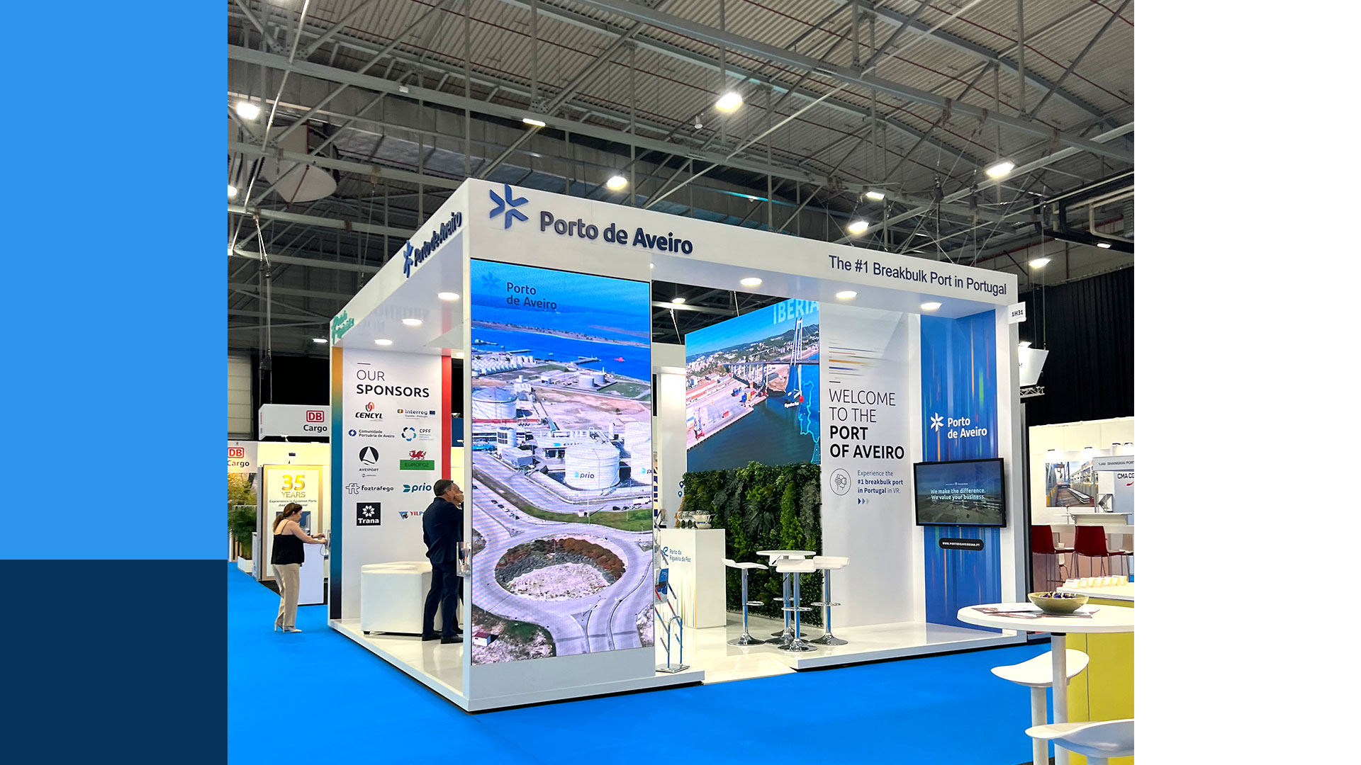 O Porto de Aveiro e Porto da Figueira da Foz juntaram esforços na sua presença na Breakbulk Europe 2023. Para destacar a sua presença, foi desenhado e construído um stand imponente, com pontos de contacto de tecnologia e um grafismo capaz de harmonizar ambas as identidades.